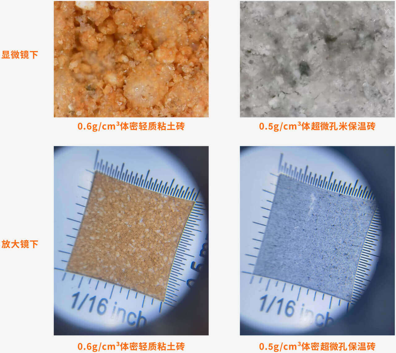 將體積密度0.6 g/cm3的普通粘土質輕質保溫磚和體積密度0.5 g/cm3的超微孔保溫磚放在顯微鏡下觀察,普通粘土質輕質保溫磚的氣孔大部分為貫通式氣孔,磚體結構松散,而超微孔保溫磚的氣孔均為封閉式納米級氣孔,結構致密。