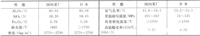 某廠生產(chǎn)的莫來石磚與國外產(chǎn)品對比