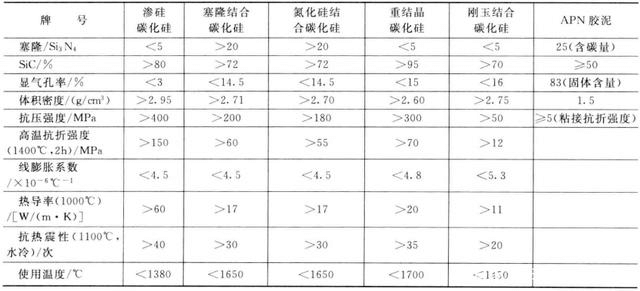 ④多種類型碳化硅磚指標(biāo)對比