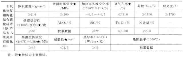 ③塞隆結(jié)合碳化硅磚指標(biāo)結(jié)合相以塞隆為主等共價鍵化合物,也有人取名稱為非氧化物復(fù)相陶瓷結(jié)合碳化硅磚,其技術(shù)指標(biāo)