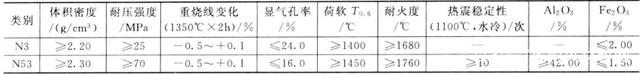某廠干熄焦?fàn)t用主要耐火材料部分理化指標(biāo)