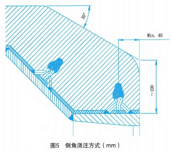 (2)燃燒器頭部澆注料形狀采用倒角